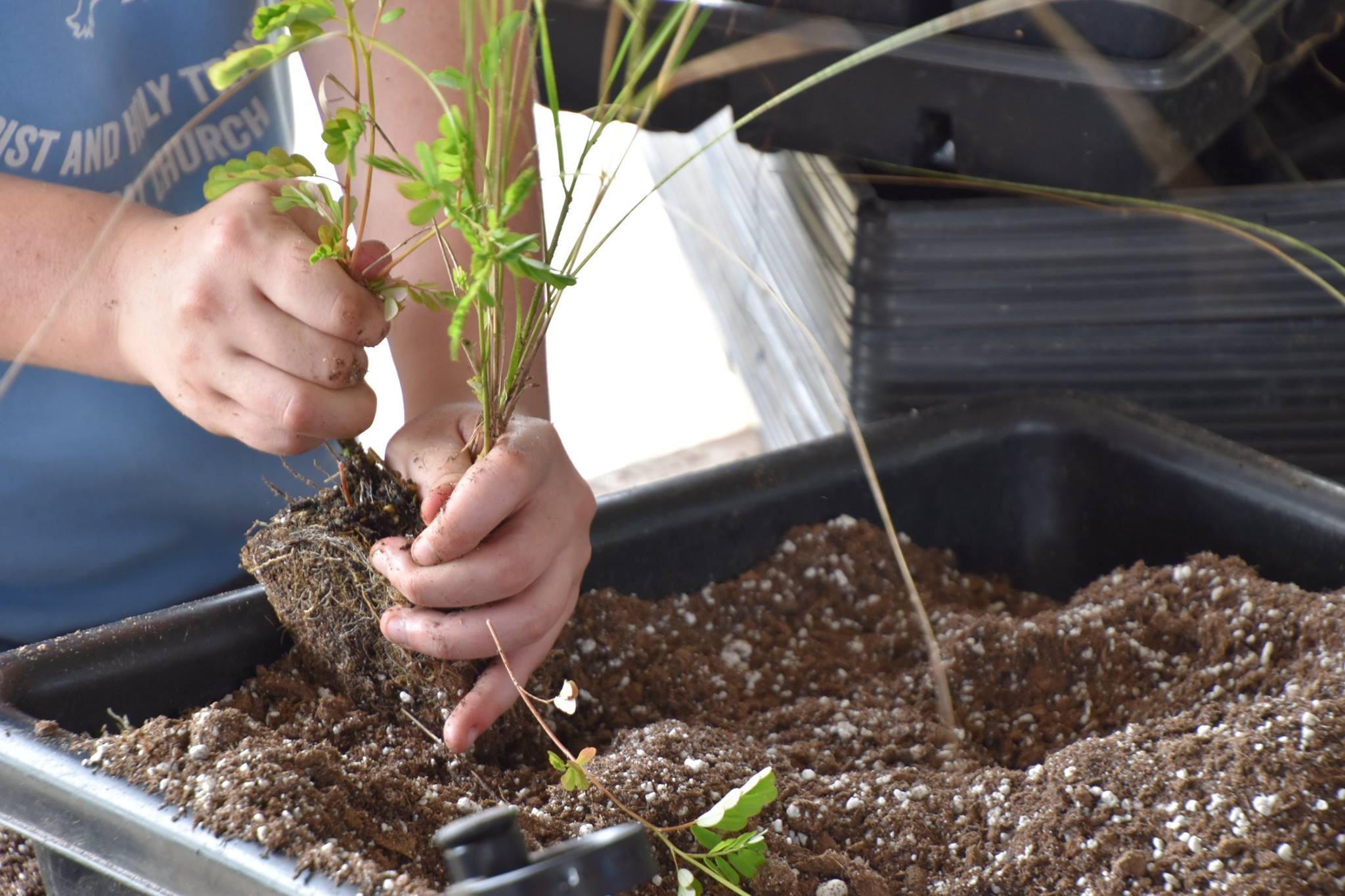 On May 22, 2017, 10 students and 2 chaperones from The Gunston School from Centreville, Maryland volunteered on a Sunday afternoon to help with coastal restoration. The volunteers divided containers of marshhay cordgrass to increase our current stock of the plant for ridge and marsh restoration.